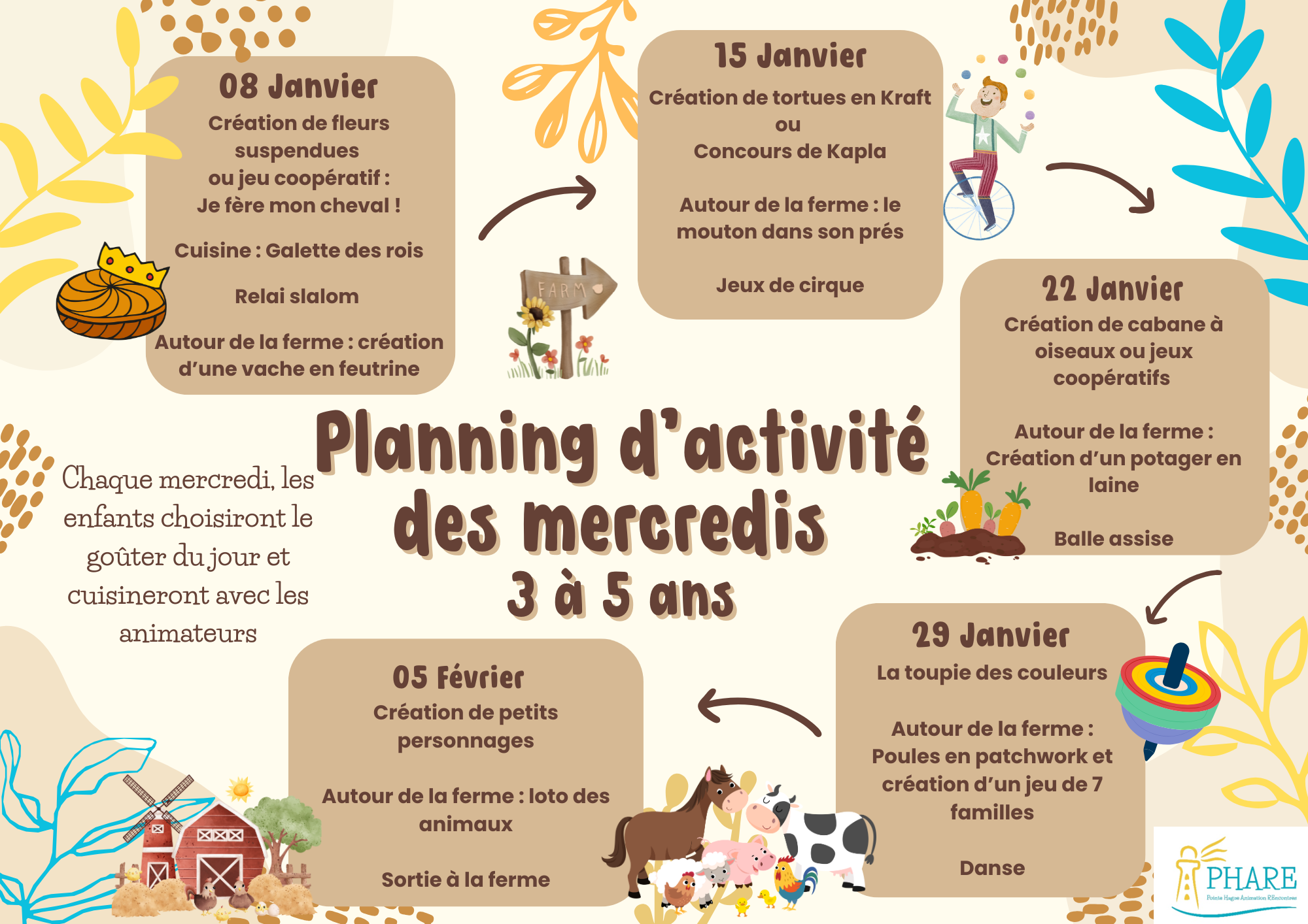 Nous accueillons les enfants âgés de 3 à 10 ans tous les mercredis durant l'année scolaire.